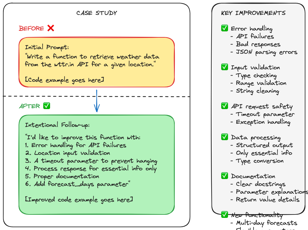 This case study demonstrates several key aspects of intentional prompting: